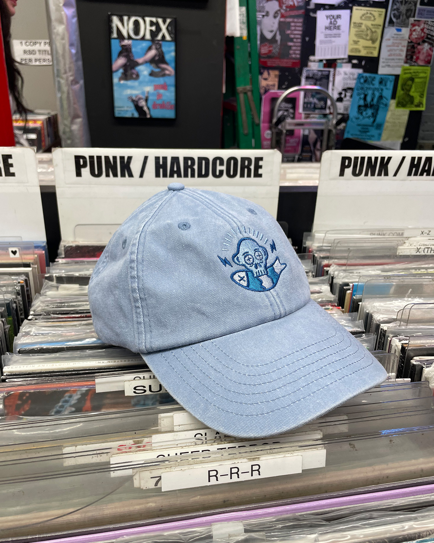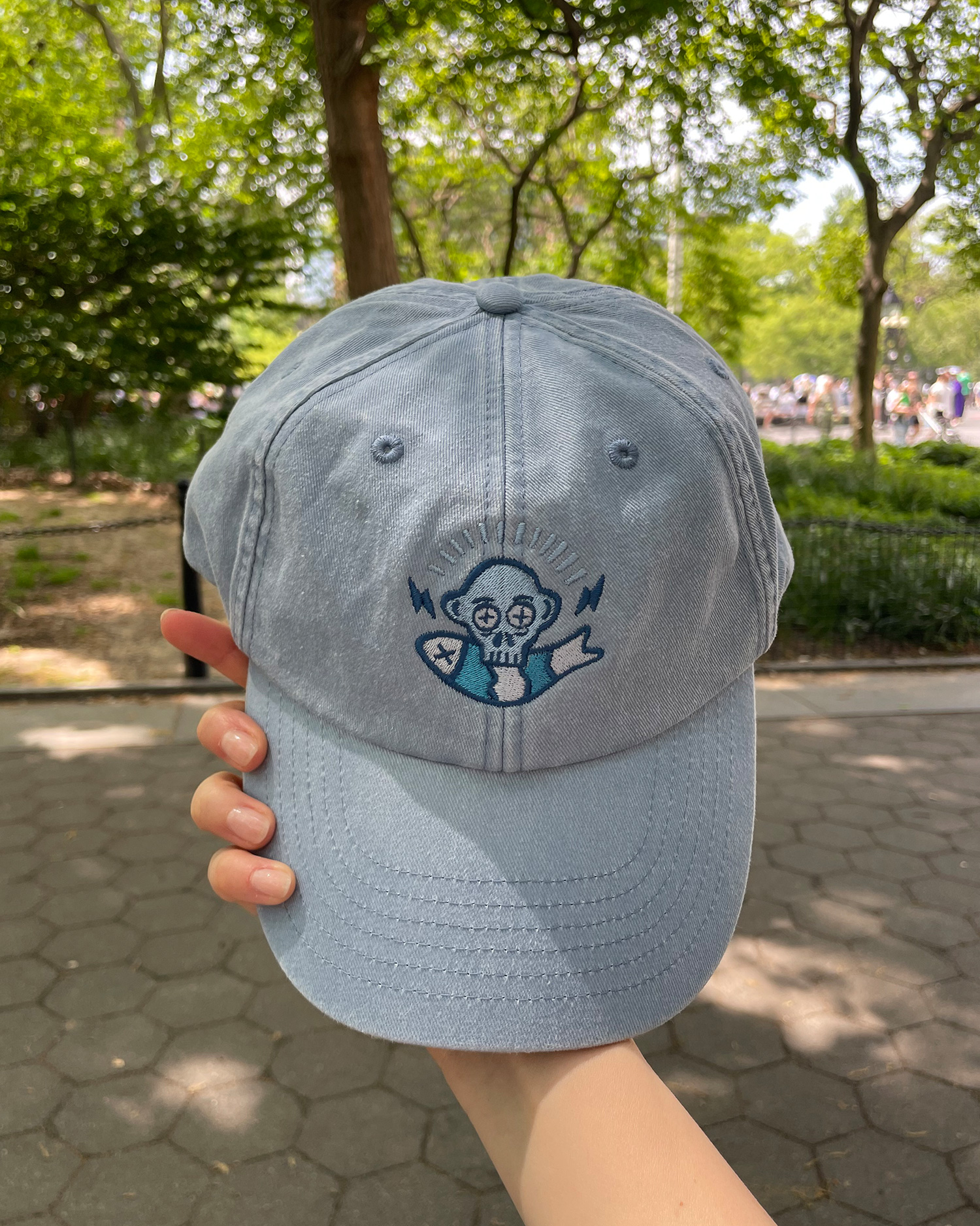 – Unisex cap with Embroidery front and back in baby blue colour